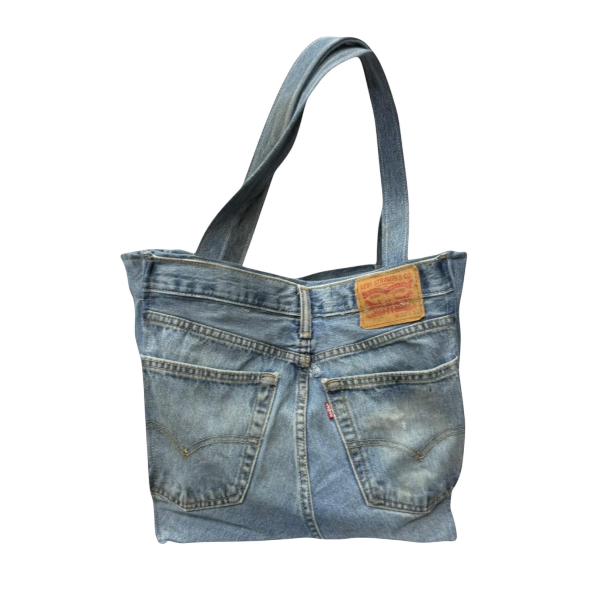 Handcrafted form Authentic vintage Levi's the New York Sidewalk Denim Tote features original jean details including the waistband ,pockets ,and bold New York side panel. Each bag is individually reworked, making every piece one of a kind.